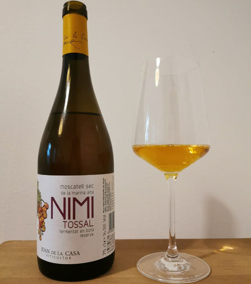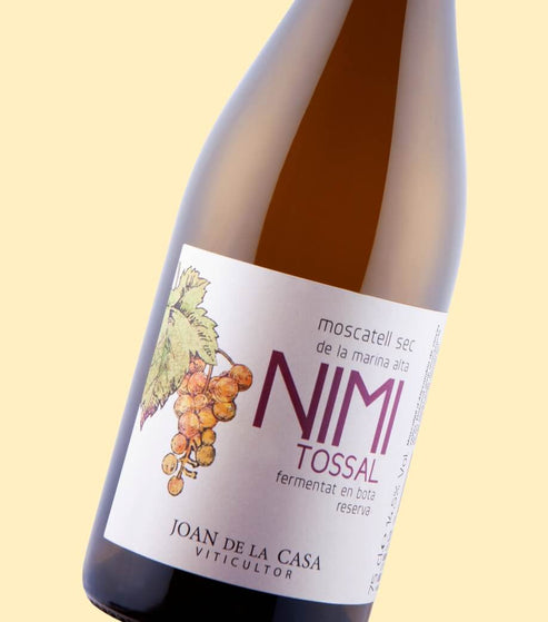 The most full bodied of Joan's orange wines is Nimi Tossal. Made with 100% organic Moscatel grapes from old vines (around 40-60 years old), this wine sees a long maceration on skins followed by 12 months in American oak barrels. The long ageing means flavours of caramel, orange, biscuit, honey, and apple with incredible concentration and length.